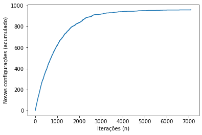 """Created on Fri Jan 20 19:03:10 2024@author: carlos gomes"""from matplotlib import pyplot as pltfrom random import*from matplotlib.backends.backend_pdf import PdfPagesfrom fpdf import FPDFcasos = []iteracoes =0iteracoes_list = []N_casos = []#-------------------------------------def par(x):if x%2==0:return1else:return0#-----------------------------------------whileTrue: linha_1 = [i for i inrange(0,8)] casos_unica = []## decidir posicao dos Bispos (B) opcoes_Bp = [i for i in linha_1 if par(i)==1] opcoes_Bb = [i for i in linha_1 if par(i)==0] Bispo_p = choice(opcoes_Bp) Bispo_b = choice(opcoes_Bb) linha_1[Bispo_p] ="B" linha_1[Bispo_b] ="B"#-------------------------------## decidir posicao da Dama (Q) opcoes_dama = [i for i in linha_1 if i !="B"] dama = choice(opcoes_dama) linha_1[dama] ="Q"#---------------------------------## decidir posicao dos cavalos (N) opcoes_cavalos = [i for i in linha_1 if i!="B"and i!="Q"]#print(opcoes_cavalos) opcoes_cavalo_1 = [i for i in linha_1 if i!="B"and i!="Q"] cavalo_1 = choice(opcoes_cavalo_1) linha_1[cavalo_1] ="N" opcoes_cavalo_2 = [i for i in linha_1 if i!="B"and i!="Q"and i!="N"] cavalo_2 = choice(opcoes_cavalo_2) linha_1[cavalo_2] ="N"#------------------------------------#decidir posicao do Rei (K) opcao_rei = [i for i in linha_1 if i!="B"and i!="Q"and i!="N"] linha_1[opcao_rei[1]] ="K"#-----------------------## decidir posicao das Torres (R) opcoes_torres = [i for i in linha_1 if i!="B"and i!="Q"and i!="N"and i!="K"] linha_1[opcoes_torres[0]] ="R" linha_1[opcoes_torres[1]] ="R"#---------------------- casos.append("".join(map(str, linha_1))) iteracoes +=1 iteracoes_list.append(iteracoes)##Devolve uma lista unica de casos-------------------for x in casos:if x notin casos_unica: casos_unica.append(x)#------------------------------------------------------ N_casos.append(len(casos_unica))print(len(casos_unica))iflen(casos_unica) ==960: # tinha de terminar de alguma maneira...breakprint(casos_unica)print(len(casos_unica))plt.plot(iteracoes_list,N_casos)plt.xlabel("Iterações (n)")plt.ylabel("Novas configurações (acumulado)")plt.show()# texto para pdf ------------------------------from fpdf import FPDFpdf = FPDF() # adicionar páginapdf.add_page()# estilopdf.set_font("Arial", size =15)# inserir texto no pdffor x in casos_unica: pdf.cell(200, 10, txt = x, ln =1, align ='C')# guardar pdfpdf.output("chess960-configuracoes.pdf")