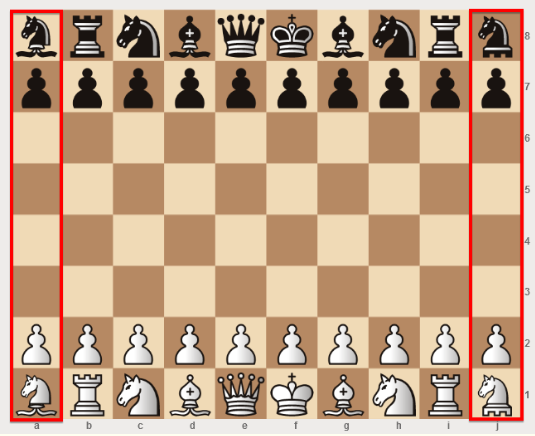 Colocar os cavalos (N ♘ ♘) e a raínha (Q ♕)